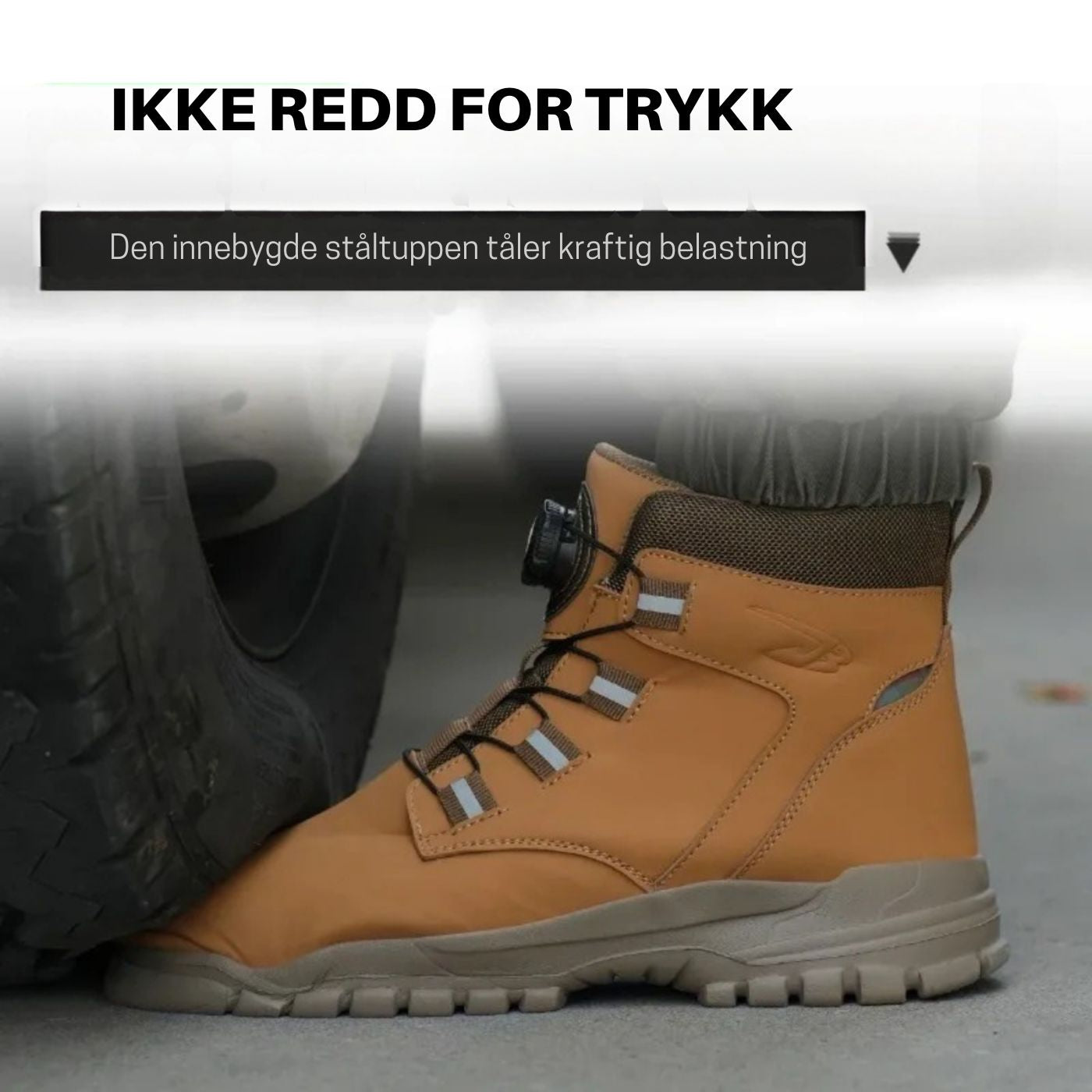 Rask og sikker tilpasning: Det enkle strammesystemet lar deg justere skoene på få sekunder uten løse lisser. Det holder passformen stabil gjennom hele dagen og gir mindre frustrasjon og mer frihet i arbeidet.